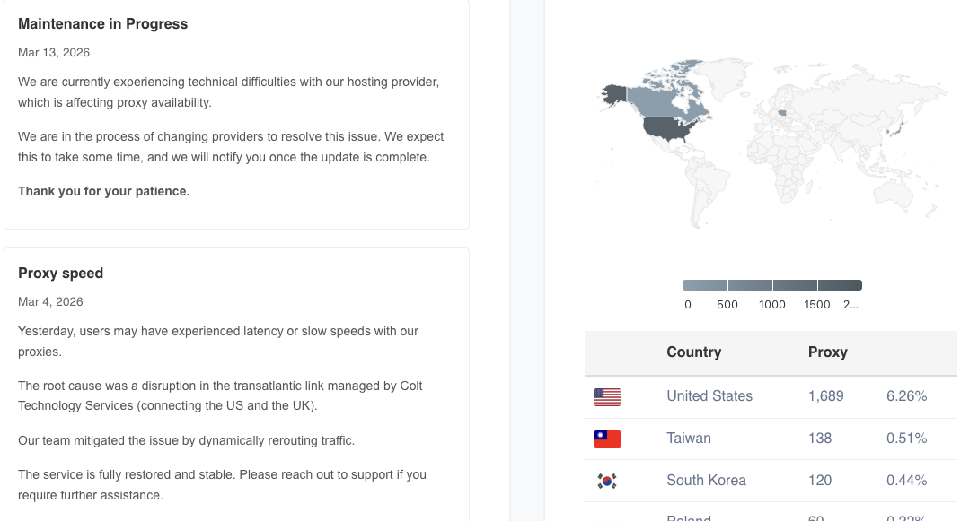 Shortly thereafter they took down their proxy offering page entirely with a Maintenance announcement.
