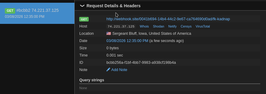 I deployed my takedown script briefly on a public EC2 instance as a test and got a handful of nodes running command scripts I passed - simple ping and wget commands just to validate it was working. An example webhook response below:
